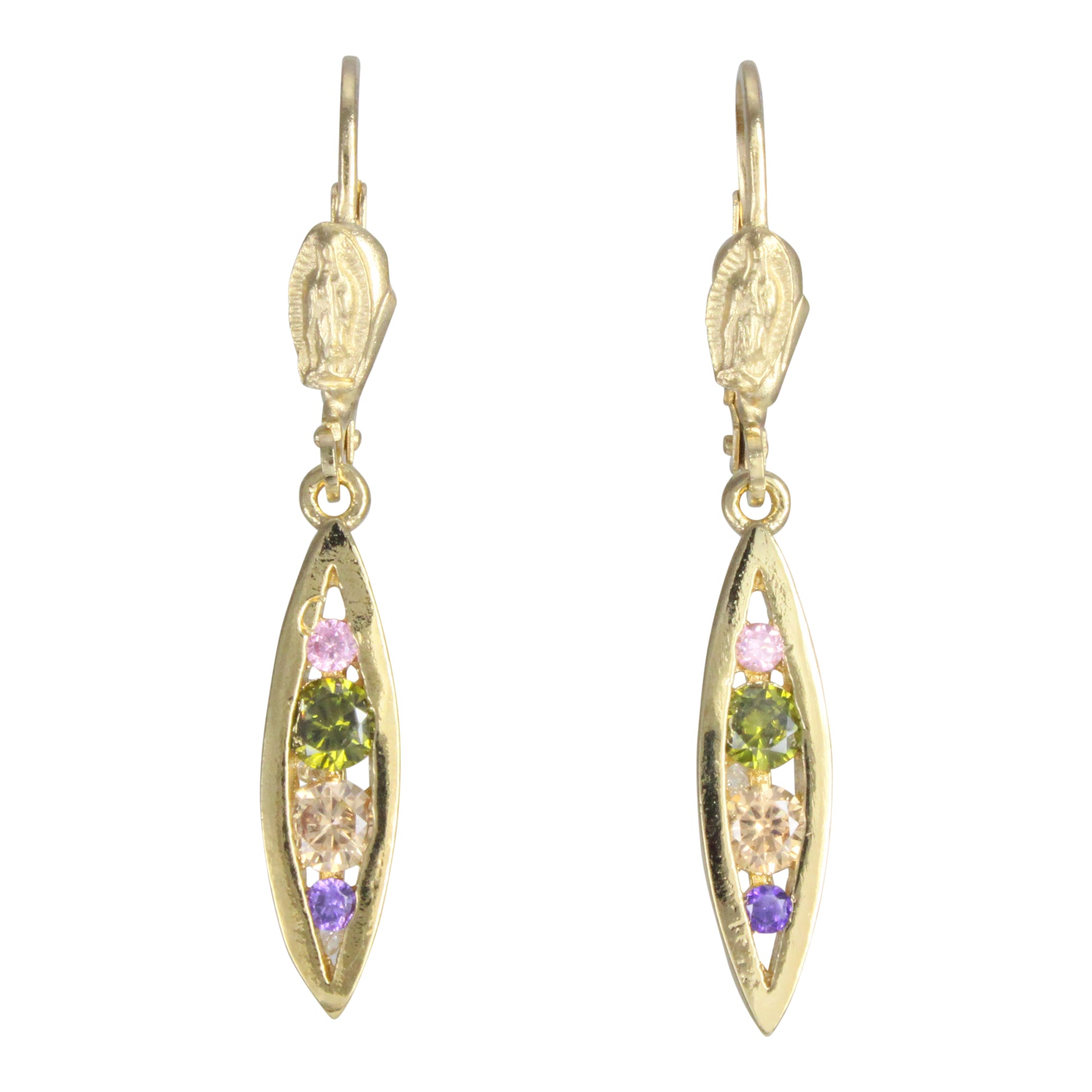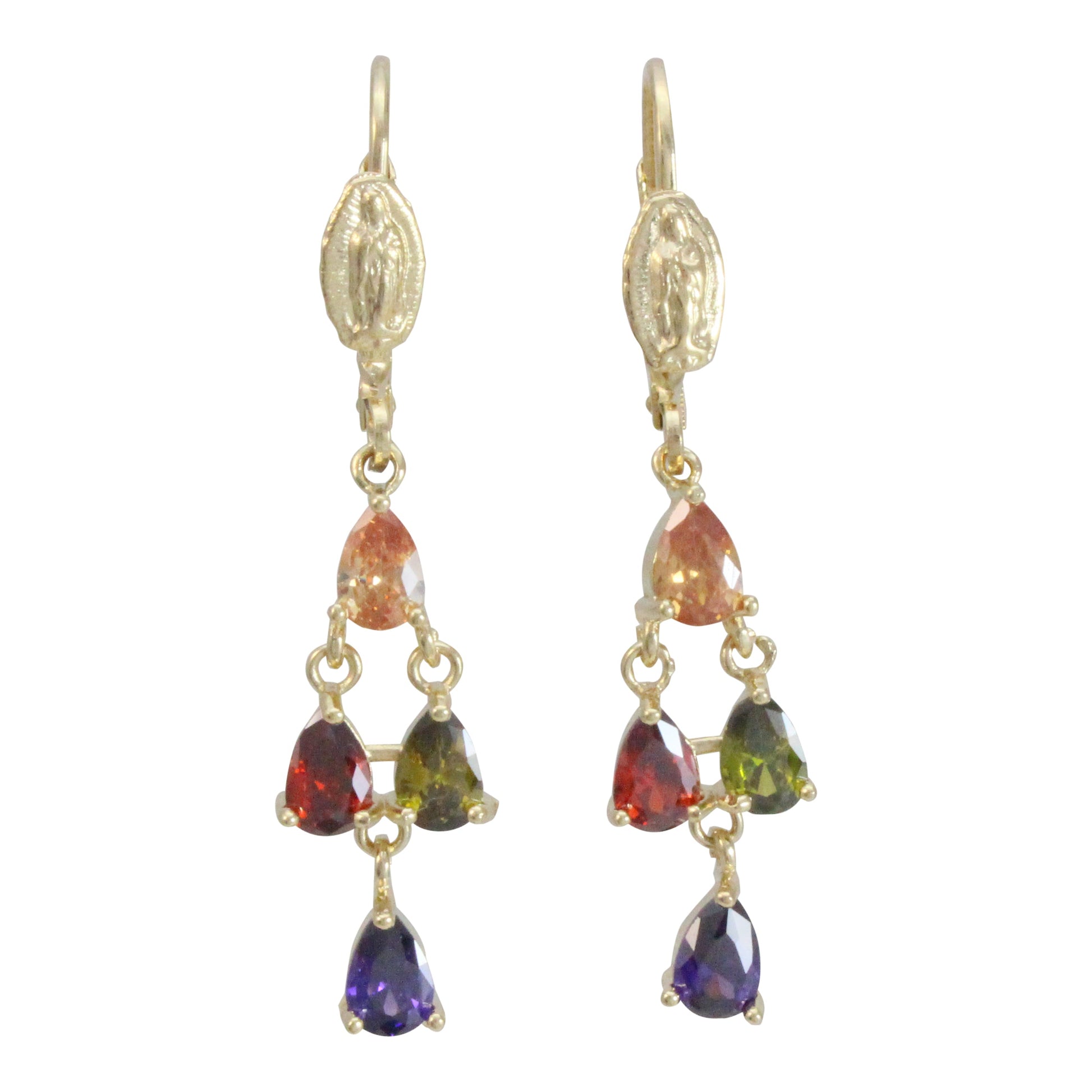 Aretes Virgen de Guadalupe en Arillo, chapa de oro 14K