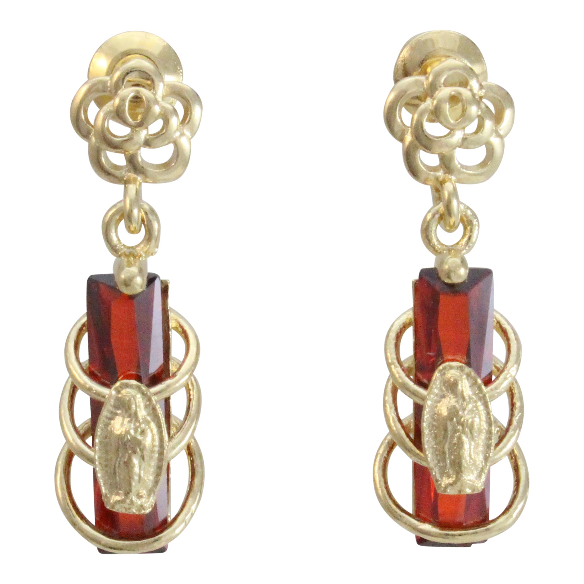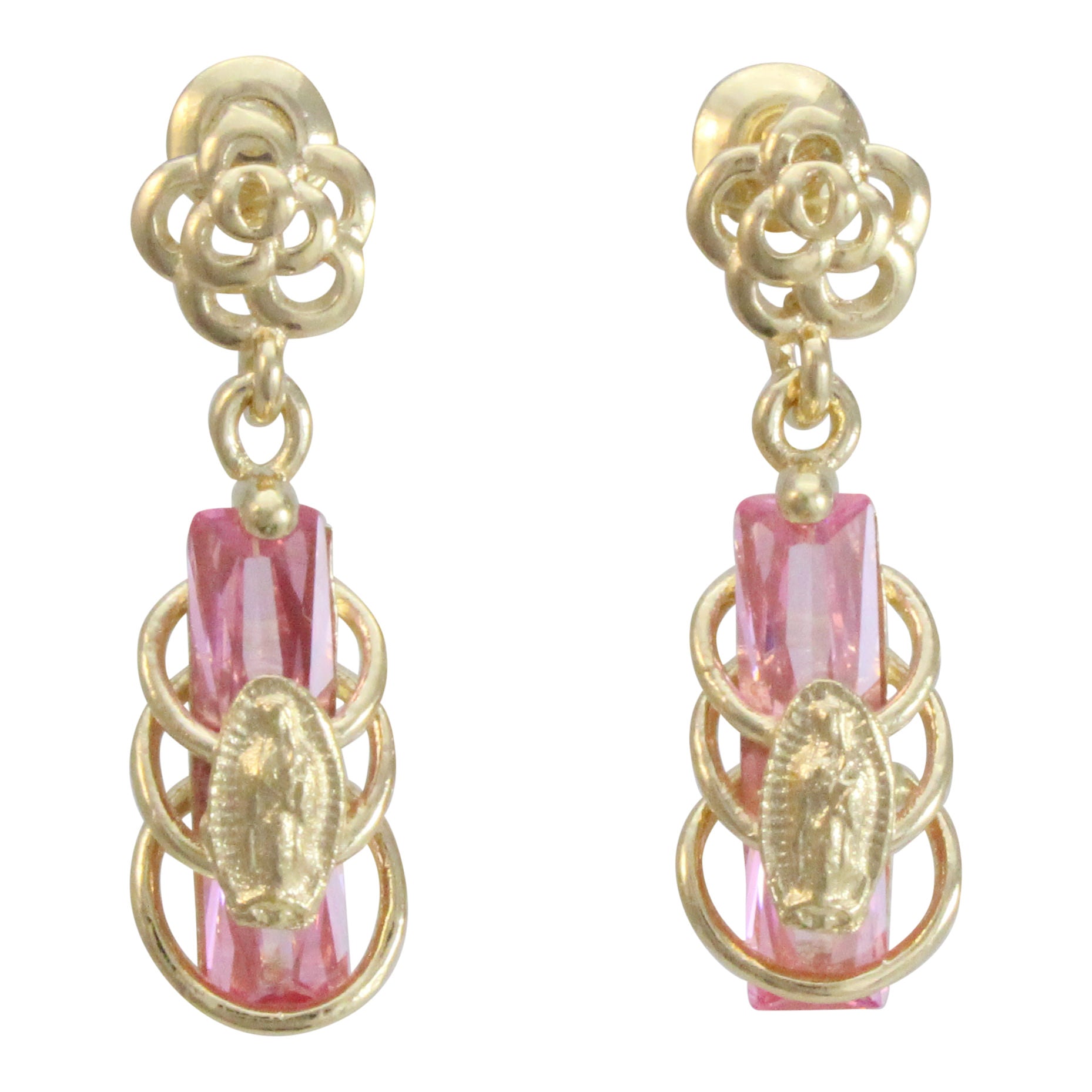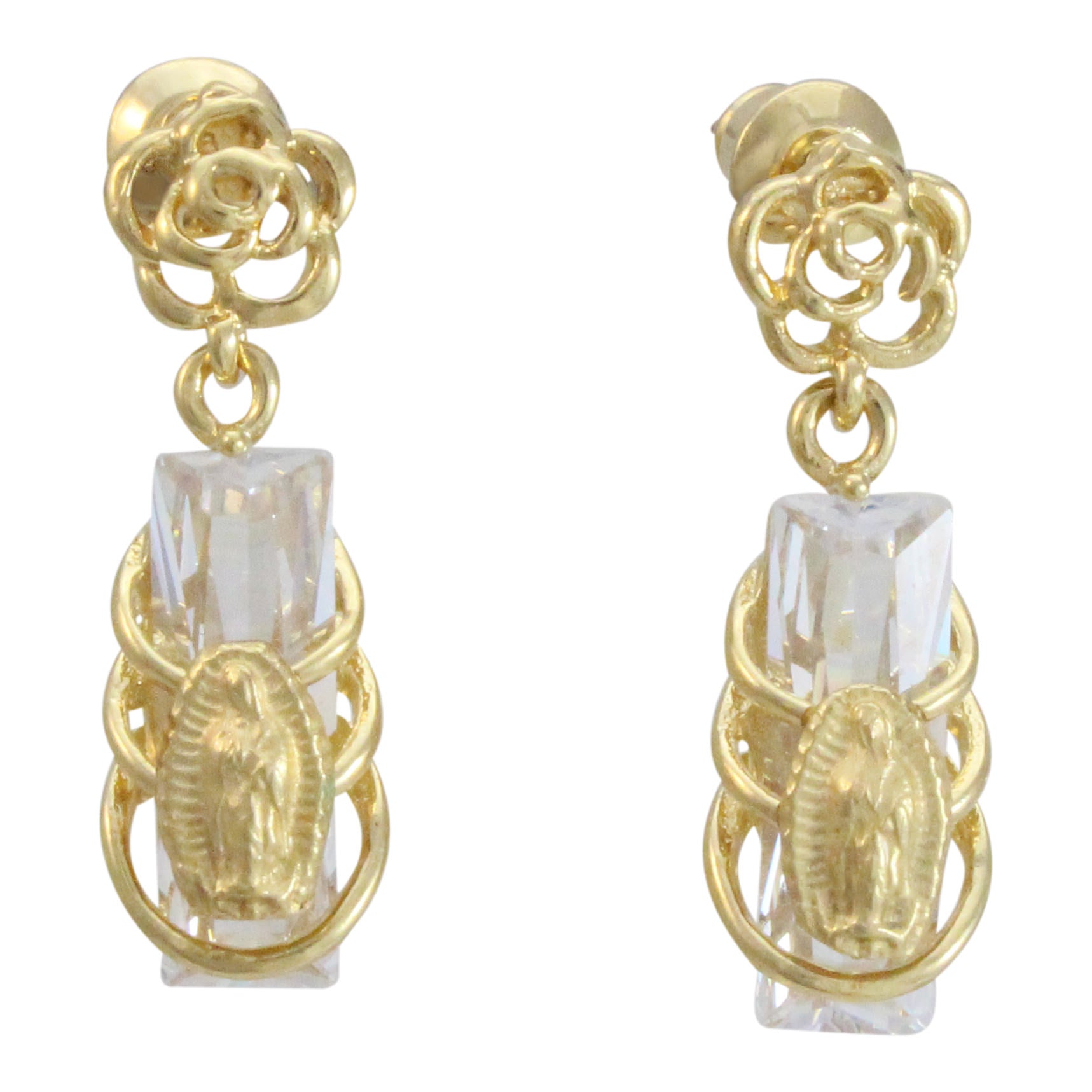Aretes Virgen de Guadalupe de chapa de oro 14K