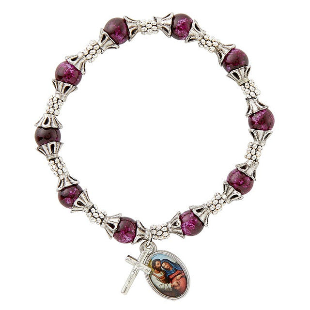Cuenta con cuentas de vidrio de mármol morado con doble tapa.