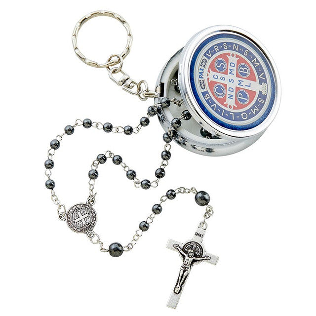 Llavero de estuche de San Benito con rosario