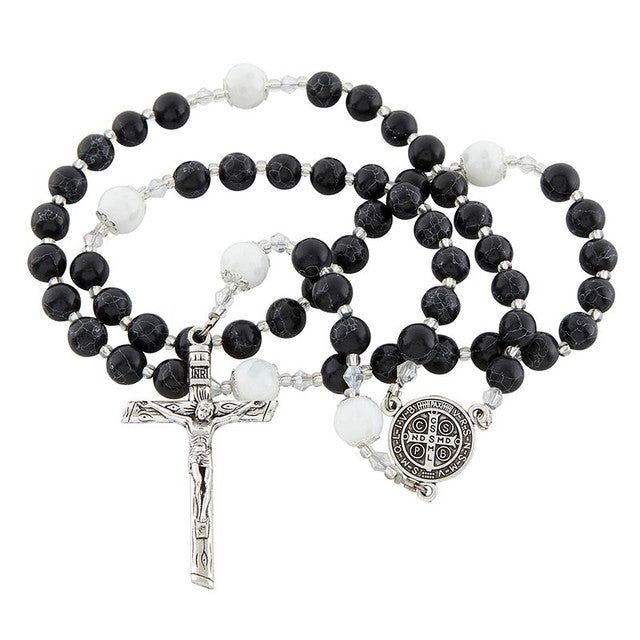 Size: 8 mm Bead, 10 mm Our Father Beads, 18" L, 2" Crucifio